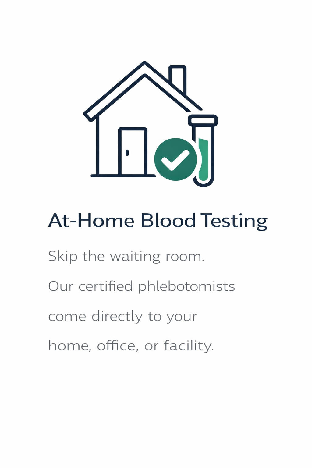 Certified mobile phlebotomists come directly to you. Skip the waiting room. Get lab work done comfortably and safely at home.