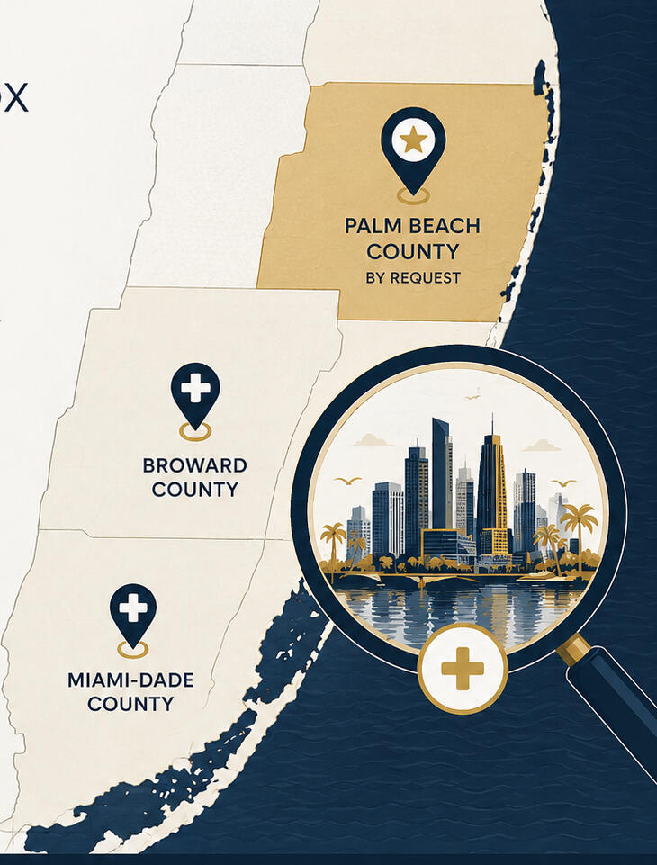 We frequently accommodate patients throughout South Florida. Contact us and we'll do our best to schedule your visit